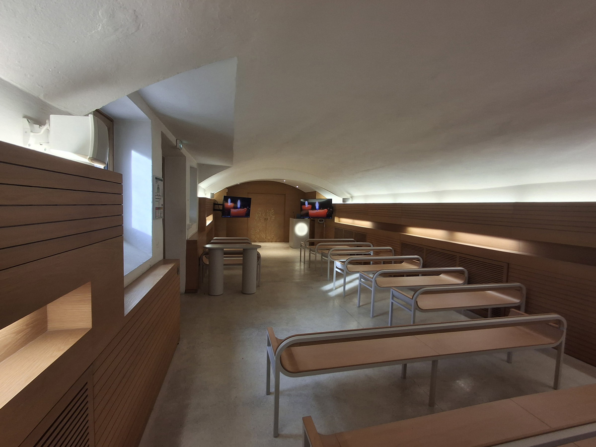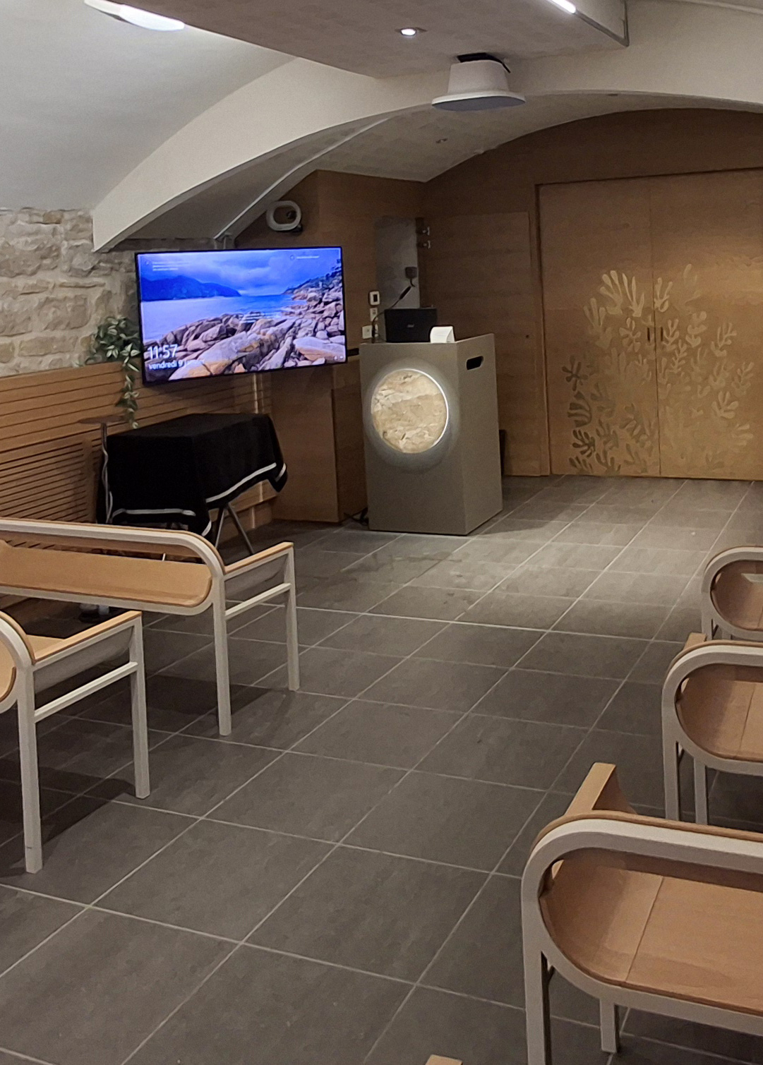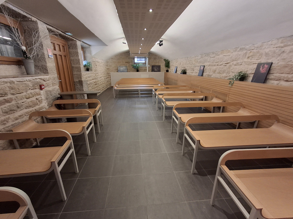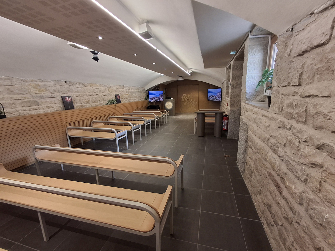 Sa voûte et ses murs en pierre en font un lieu apaisant. Cette salle dispose d’une capacité d’accueil de 50 places assises.